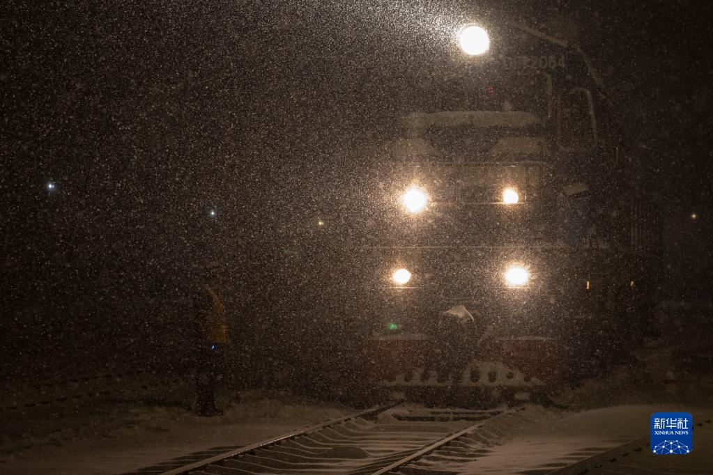 11月22日凌晨,在鸡西站西场,工作人员进行编组作业。 黑龙江省鸡西市气象局于11月22日03时50分将暴雪橙色预警信号升级为暴雪红色预警信号。为保障当地物资运输畅通、居民出行便利,鸡西市相关部门迅速组织除雪力量,一夜无眠的“逆行者”在暴雪中用自己的辛苦付出,保障城市有序运转和居民正常生活。 新华社记者 张涛 摄
