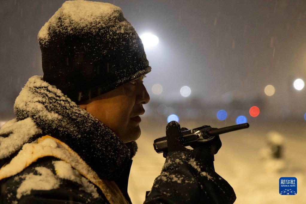 11月22日凌晨,在鸡西站西场,工作人员通过对讲机沟通清雪作业情况。 黑龙江省鸡西市气象局于11月22日03时50分将暴雪橙色预警信号升级为暴雪红色预警信号。为保障当地物资运输畅通、居民出行便利,鸡西市相关部门迅速组织除雪力量,一夜无眠的“逆行者”在暴雪中用自己的辛苦付出,保障城市有序运转和居民正常生活。 新华社记者 张涛 摄