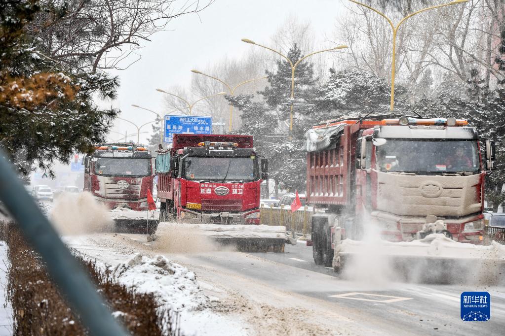当日,吉林省长春市迎来新一轮降雪天气,长春市城市管理局组织一万余名环卫工人与一千余台清雪机械设备,进行循环清雪作业,保障市民出行安全。