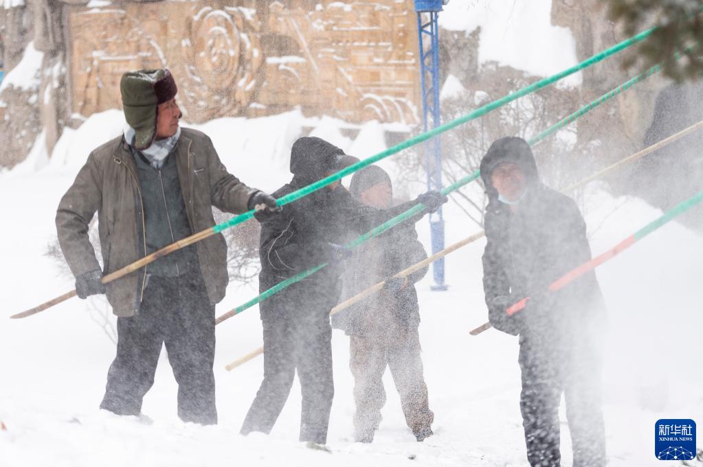 新华全媒+|风雪中,他们挥舞6米长竿