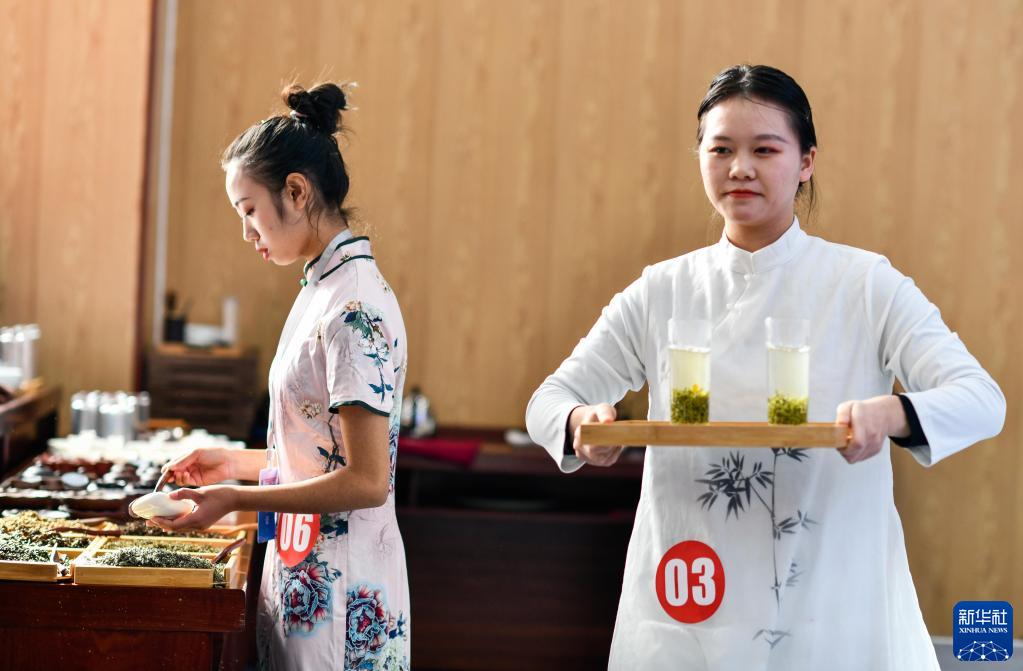 11月23日,参赛选手在贵州省龙里县中等职业学校参加手工制茶比赛。 当日,2021年贵州省黔南州中等职业学校师生技能大赛暨贵州省职业院校技能大赛选拔赛(龙里赛区)在龙里县中等职业学校举行。来自黔南州各职业学校的620余名参赛师生,分别就旅游服务、农林牧渔、加工制造、交通运输、文化艺术、财经商贸等类别进行现场实操比赛,展示职业教育的成果和风采。 新华社记者 杨文斌 摄