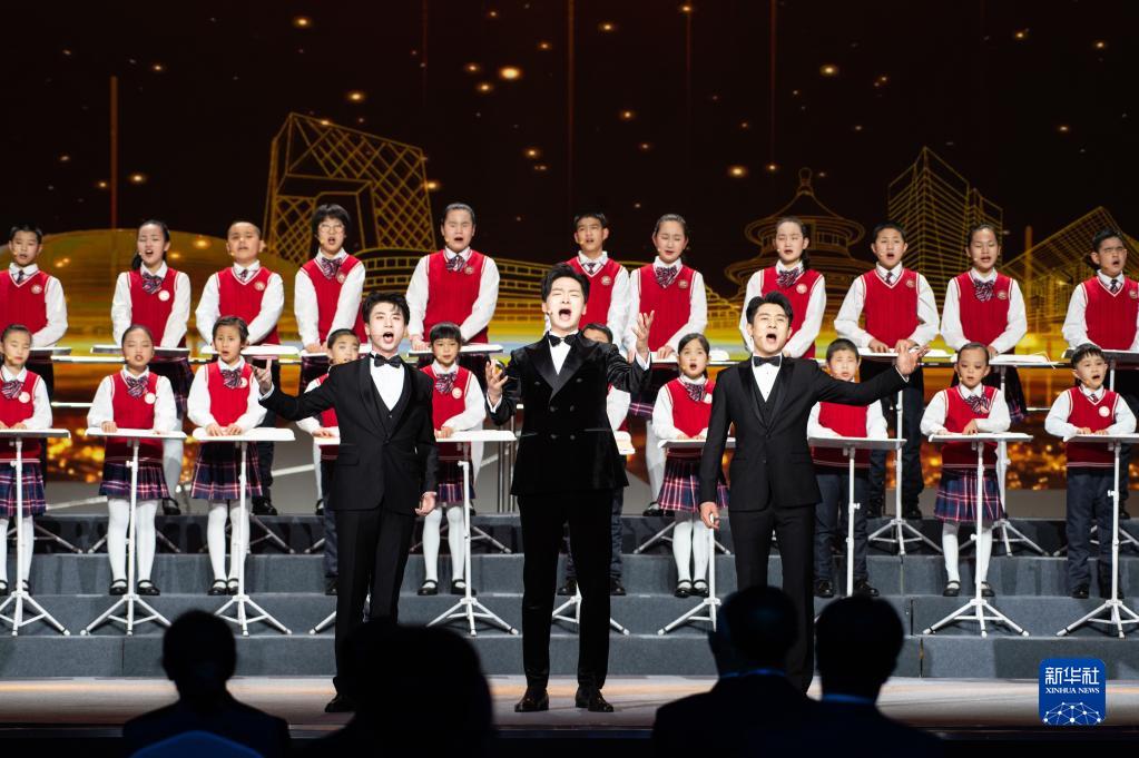 11月24日,歌手和盲童合唱团一起表演歌曲《点亮梦想》。 当日,北京2022年冬残奥会倒计时100天主题活动在北京举行。 新华社记者 陈钟昊 摄