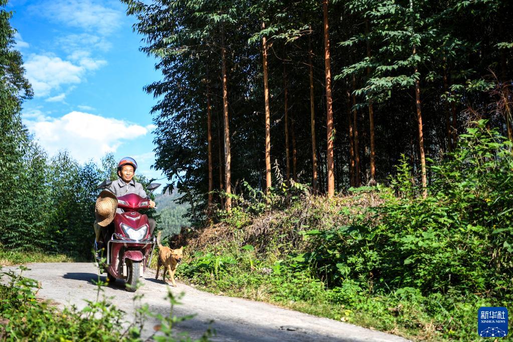 11月24日,在广西武宣县东乡镇屯应村,护林员雷其元带着爱犬前往要巡查的林区。 今年66岁的雷其元是广西武宣县东乡镇屯应村的一名村级护林员,管护着约5800亩公益林,至今已坚守了17年。 雷其元管护的公益林所在山区海拔最高有1400多米,最长的线路来回走完需要近10个小时。 17年来,雷其元所守护的公益林从未发生火灾、偷盗砍伐林木等问题。望着眼前郁郁葱葱的山林,雷其元干劲十足。“守山护林是我的职责,只要我还走得动,我就要继续干下去。”雷其元说。 新华社记者 曹祎铭 摄