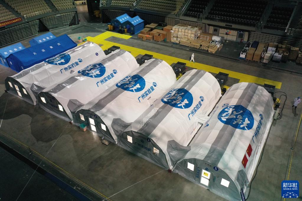 这是11月24日拍摄的“猎鹰号”硬气膜实验室外景(无人机照片)。 夜幕降临,在大连体育中心羽毛球馆,一组五个舱位的“猎鹰号”硬气膜实验室里灯火通明,近百名工作人员在和时间赛跑,以最快速度找出新冠病毒的蛛丝马迹。 “猎鹰号”硬气膜实验室是专业用于新冠病毒核酸检测的快速移动实验室。从11月11日正式投入使用,该实验室已经参与了大连多轮大规模核酸检测工作。 核酸检测实验对温度、湿度、气压有严格要求。大连“猎鹰号”硬气膜实验室负责人朱保坤说,核酸检测是一个非常复杂的过程,需要实验人员付出艰苦的劳动,同时还需要保证实验的安全性、科学性。目前的“猎鹰号”优化了流程,一组五个舱位里包含一个共用的试剂准备区、两个样本处理区和两个核酸扩增分析区。按照流程先后,呈现从中心向两边分布的形态,使得整个实验室工作更加集成、高效。 新华社记者 姚剑锋 摄 |