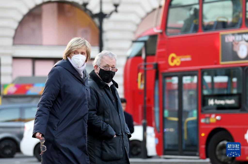 11月25日,人们在英国伦敦佩戴口罩出行。 英国政府25日公布的疫情数据显示,该国新增新冠确诊病例47240例,累计确诊10021497例;新增死亡147例,累计死亡144433例。 新华社记者 李颖 摄