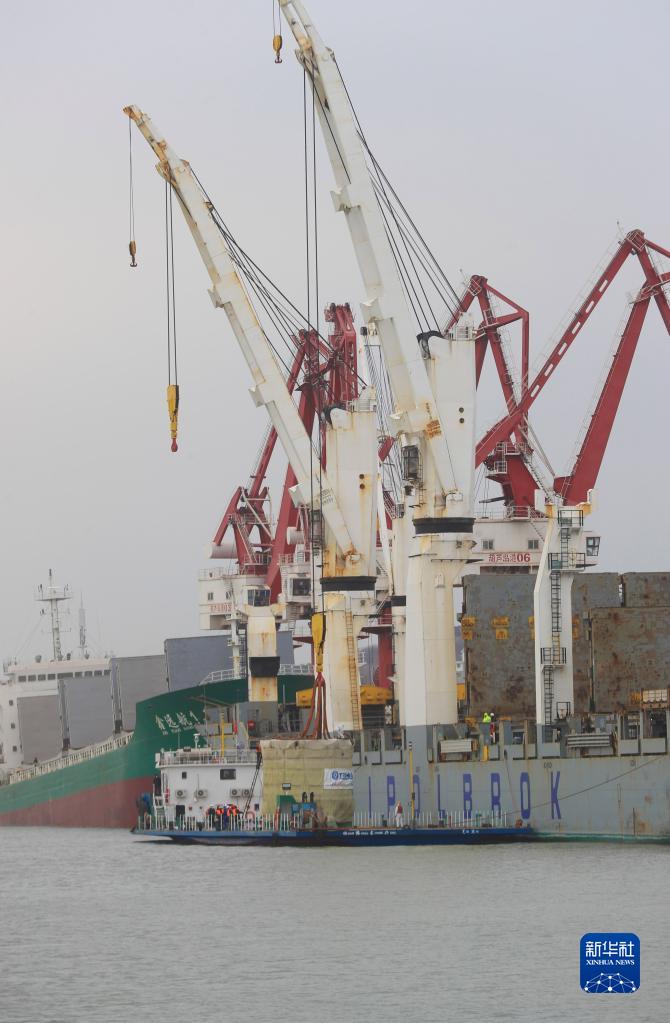 11月29日,在葫芦岛港码头,徐大堡核电站首批俄供大件设备被吊装到运输船上。 11月29日,“帕兰道夫斯基”号货轮驶入辽宁葫芦岛港,随着沈阳海关所属葫芦岛海关两名关员对其运载的从俄罗斯进口核电设备完成现场监管,中俄核能合作项目——徐大堡核电首批俄供大件设备顺利通关,即将运往几十公里外的徐大堡核电站施工现场进行安装。 此次通关设备为徐大堡核电3号机组的堆芯捕集器壳体和填料等配套设备,由位于俄罗斯萨马拉州塞兹兰市的重工机械制造公司制造,8月底从俄罗斯圣彼得堡港发运,经过90天约13000海里的远洋运输抵达。 徐大堡核电站是中国东北第二个,也是迄今中国最北的核电站。3、4号机组采用俄罗斯VVER-1200机型,单机容量127.4万千瓦。 新华社记者 杨青 摄