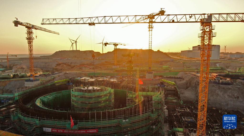 这是徐大堡核电站3号机组施工作业现场(11月26日摄)。 11月29日,“帕兰道夫斯基”号货轮驶入辽宁葫芦岛港,随着沈阳海关所属葫芦岛海关两名关员对其运载的从俄罗斯进口核电设备完成现场监管,中俄核能合作项目——徐大堡核电首批俄供大件设备顺利通关,即将运往几十公里外的徐大堡核电站施工现场进行安装。 此次通关设备为徐大堡核电3号机组的堆芯捕集器壳体和填料等配套设备,由位于俄罗斯萨马拉州塞兹兰市的重工机械制造公司制造,8月底从俄罗斯圣彼得堡港发运,经过90天约13000海里的远洋运输抵达。 徐大堡核电站是中国东北第二个,也是迄今中国最北的核电站。3、4号机组采用俄罗斯VVER-1200机型,单机容量127.4万千瓦。 新华社记者 杨青 摄