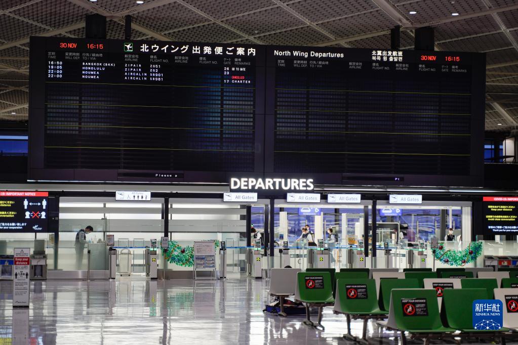 据日本广播协会电视台11月30日报道,日本发现首例新冠变异病毒奥密克戎毒株感染病例,患者是一名28日从纳米比亚入境人员。在多国报告奥密克戎毒株感染病例后,日本首相岸田文雄29日宣布原则上停止外国人新入境,从11月30日零时起执行。新入境是指新申请入境的外国人,日本人及其配偶和有日本在留资格的外国人返回日本等情况除外。新华社记者 张笑宇 摄