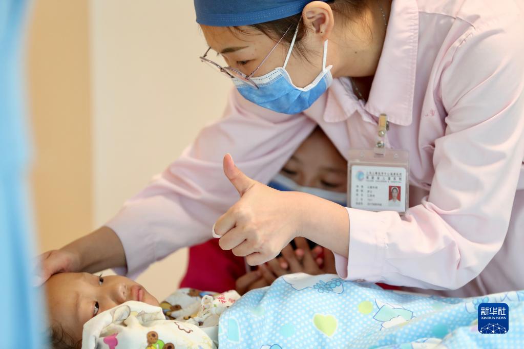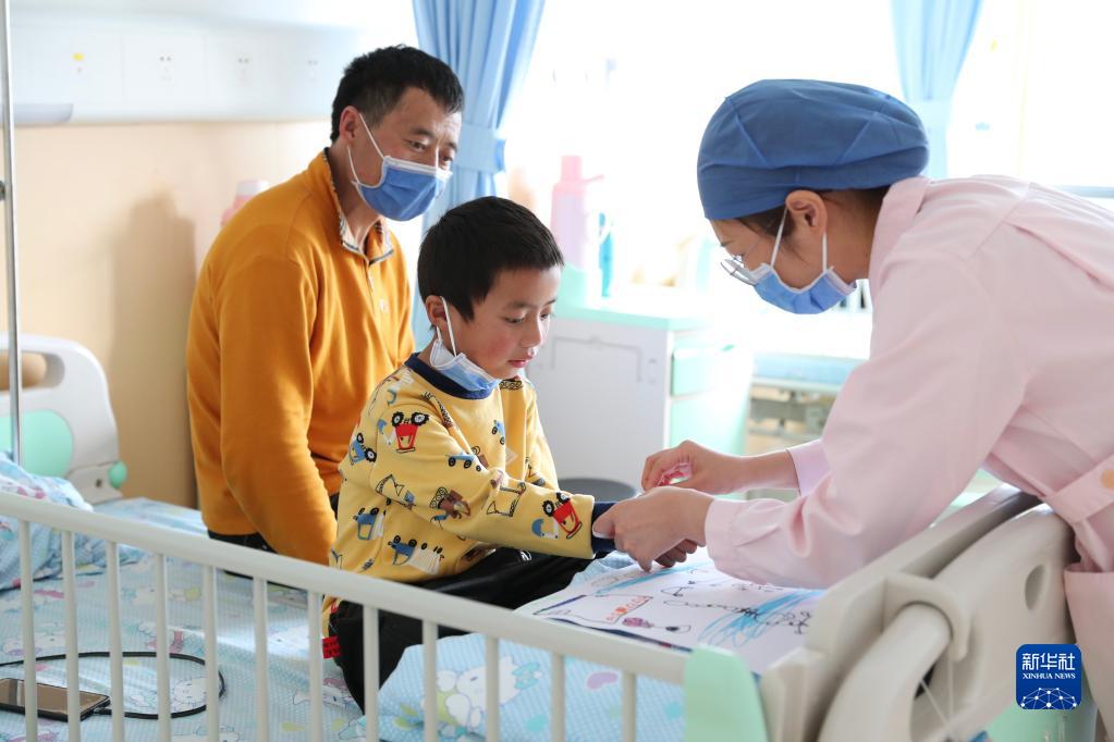 11月25日,在福建省儿童医院病房,护士在为康复中的先心病患儿次仁扎西进行日常护理。 12月1日,9名来自西藏昌都的先天性心脏病患儿经过20天的免费医治从福建省儿童医院康复出院,他们和家人将在福建省第九批援藏工作队队员的陪护下返回家乡,开始新的生活。 今年10月底,福建省妇幼保健院、福建省儿童医院联合上海儿童医学中心专家赴西藏昌都开展儿童先天性心脏病筛查义诊活动,在对1000余名儿童进行先心病筛查中发现30余名患儿,有9名符合手术指征。 11月12日,9名藏族儿童在家人陪伴下乘机飞抵福州,开始“补心”之旅。11月19日,来自上海、福建两地的儿童医学专家联手为孩子们分别完成心脏介入手术和外科开胸手术,让孩子们重获“心”生。 新华社记者 姜克红 摄