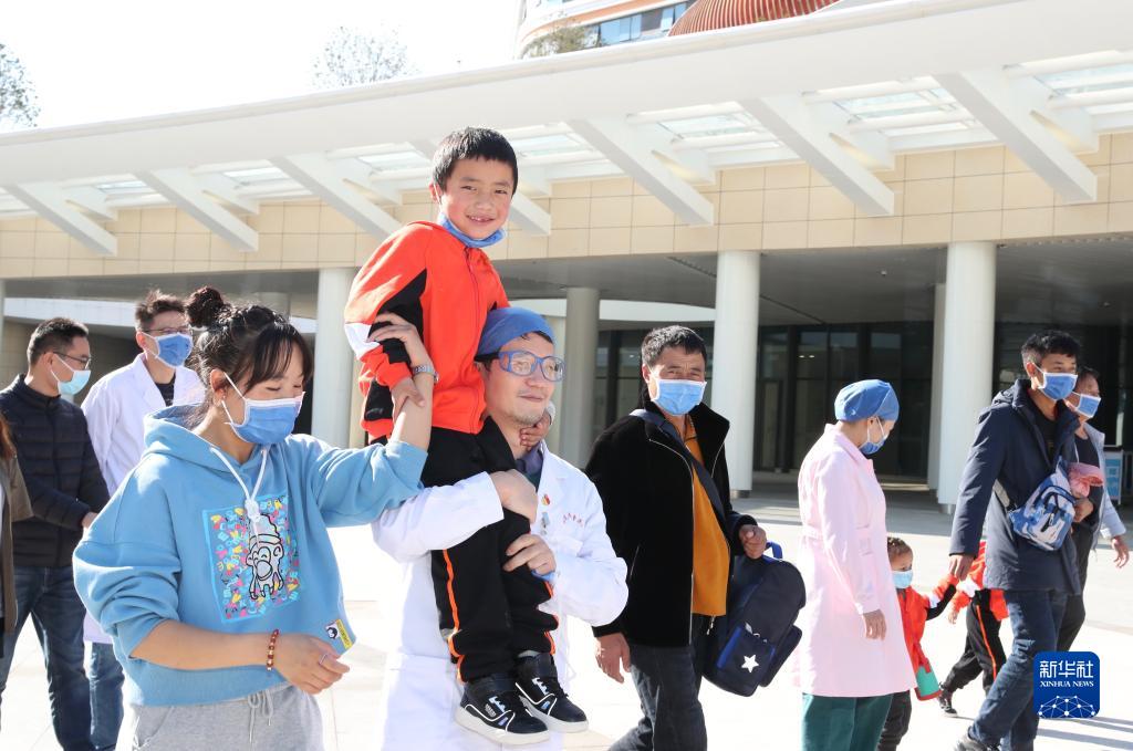 12月1日,康复出院的先心病患儿与家人在医院工作人员的陪伴下走出福建省儿童医院大楼。 12月1日,9名来自西藏昌都的先天性心脏病患儿经过20天的免费医治从福建省儿童医院康复出院,他们和家人将在福建省第九批援藏工作队队员的陪护下返回家乡,开始新的生活。 今年10月底,福建省妇幼保健院、福建省儿童医院联合上海儿童医学中心专家赴西藏昌都开展儿童先天性心脏病筛查义诊活动,在对1000余名儿童进行先心病筛查中发现30余名患儿,有9名符合手术指征。 11月12日,9名藏族儿童在家人陪伴下乘机飞抵福州,开始“补心”之旅。11月19日,来自上海、福建两地的儿童医学专家联手为孩子们分别完成心脏介入手术和外科开胸手术,让孩子们重获“心”生。 新华社记者 姜克红 摄
