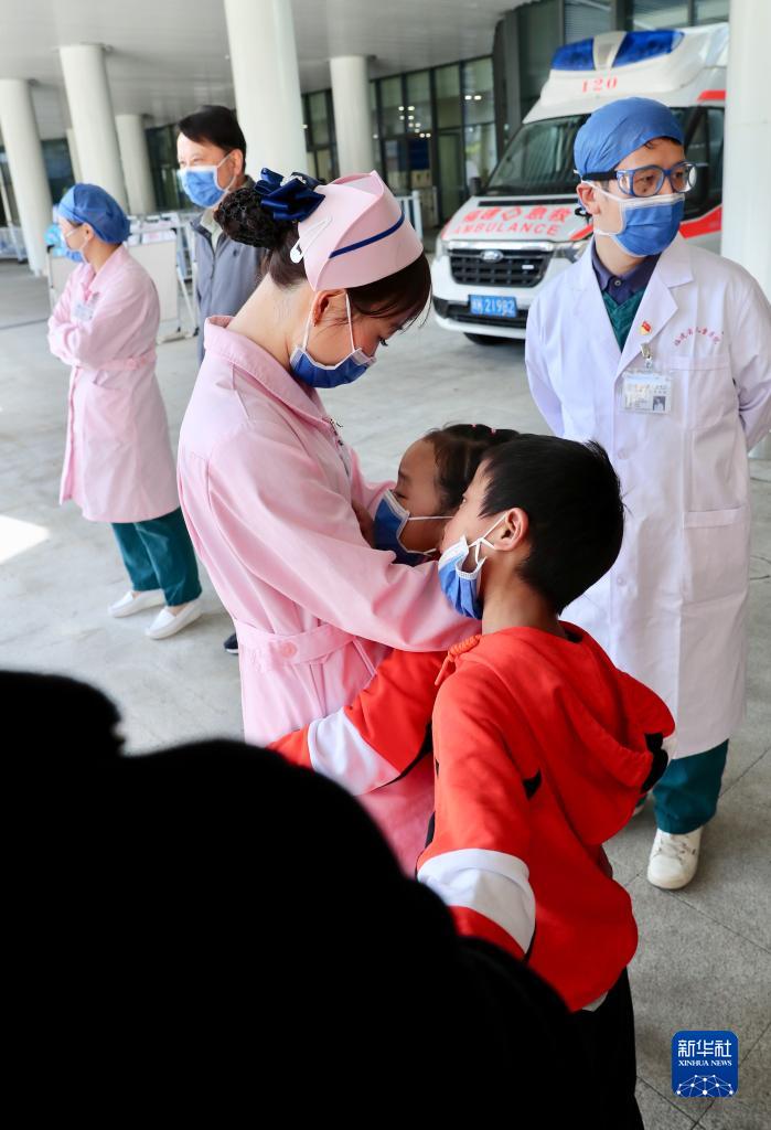 12月1日,在福建省儿童医院,康复出院的先心病患儿在上车前与照顾自己多日的医务人员告别。 12月1日,9名来自西藏昌都的先天性心脏病患儿经过20天的免费医治从福建省儿童医院康复出院,他们和家人将在福建省第九批援藏工作队队员的陪护下返回家乡,开始新的生活。 今年10月底,福建省妇幼保健院、福建省儿童医院联合上海儿童医学中心专家赴西藏昌都开展儿童先天性心脏病筛查义诊活动,在对1000余名儿童进行先心病筛查中发现30余名患儿,有9名符合手术指征。 11月12日,9名藏族儿童在家人陪伴下乘机飞抵福州,开始“补心”之旅。11月19日,来自上海、福建两地的儿童医学专家联手为孩子们分别完成心脏介入手术和外科开胸手术,让孩子们重获“心”生。 新华社记者 姜克红 摄