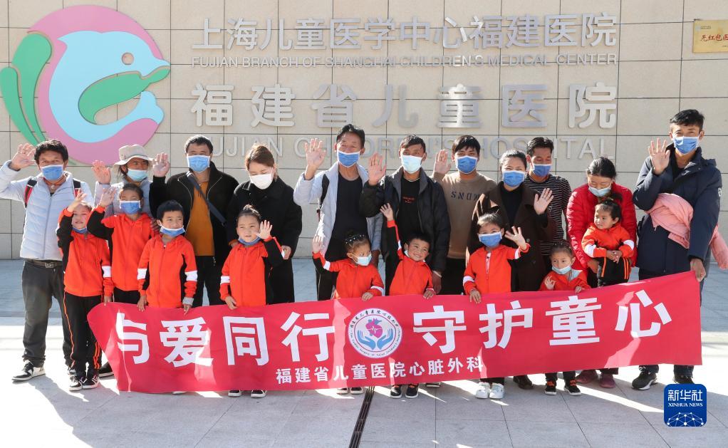 12月1日,康复出院的先心病患儿与家人在福建省儿童医院大楼前合影。 12月1日,9名来自西藏昌都的先天性心脏病患儿经过20天的免费医治从福建省儿童医院康复出院,他们和家人将在福建省第九批援藏工作队队员的陪护下返回家乡,开始新的生活。 今年10月底,福建省妇幼保健院、福建省儿童医院联合上海儿童医学中心专家赴西藏昌都开展儿童先天性心脏病筛查义诊活动,在对1000余名儿童进行先心病筛查中发现30余名患儿,有9名符合手术指征。 11月12日,9名藏族儿童在家人陪伴下乘机飞抵福州,开始“补心”之旅。11月19日,来自上海、福建两地的儿童医学专家联手为孩子们分别完成心脏介入手术和外科开胸手术,让孩子们重获“心”生。 新华社记者 姜克红 摄
