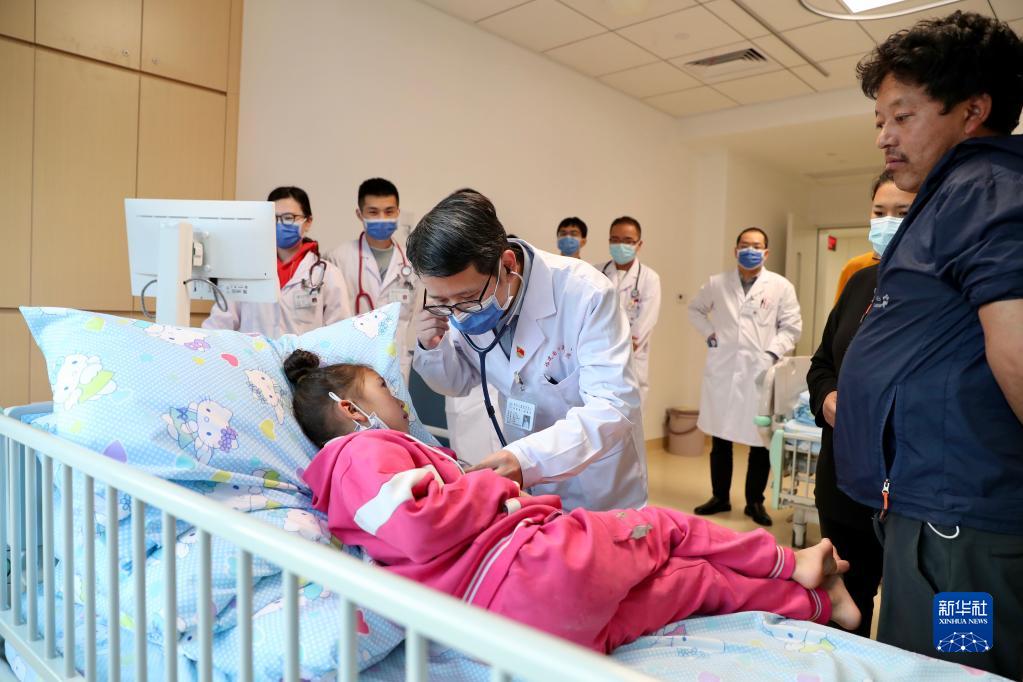 11月25日,在福建省儿童医院病房,医生在检查先心病患儿次仁拥措的康复情况。 12月1日,9名来自西藏昌都的先天性心脏病患儿经过20天的免费医治从福建省儿童医院康复出院,他们和家人将在福建省第九批援藏工作队队员的陪护下返回家乡,开始新的生活。 今年10月底,福建省妇幼保健院、福建省儿童医院联合上海儿童医学中心专家赴西藏昌都开展儿童先天性心脏病筛查义诊活动,在对1000余名儿童进行先心病筛查中发现30余名患儿,有9名符合手术指征。 11月12日,9名藏族儿童在家人陪伴下乘机飞抵福州,开始“补心”之旅。11月19日,来自上海、福建两地的儿童医学专家联手为孩子们分别完成心脏介入手术和外科开胸手术,让孩子们重获“心”生。 新华社记者 姜克红 摄