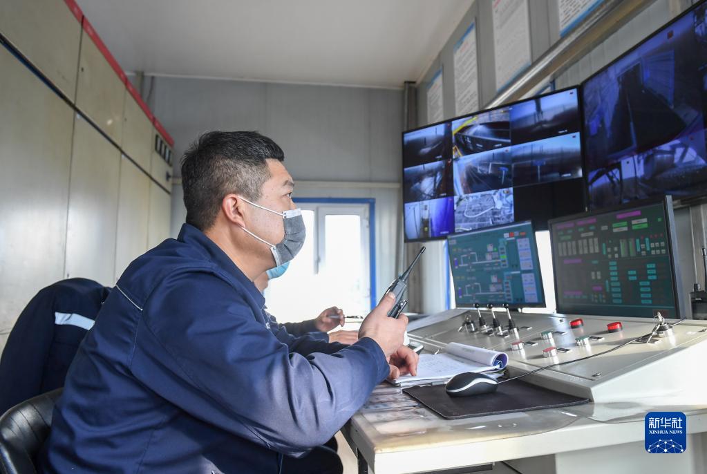 11月30日,工作人员在神华北电胜利能源有限公司装车站监控室内检查煤炭装车情况。