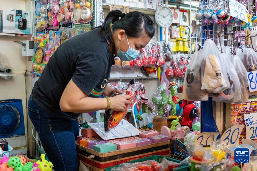 11月16日,纪淑练在泰国廊开的店铺内整理商品。 新华社记者 林昊 摄