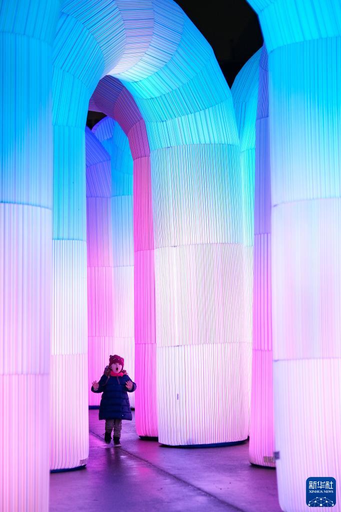 11月30日,一名小朋友在比利时布鲁塞尔的舒曼广场欣赏灯光艺术装置“天空城堡”。 为迎接即将到来的圣诞节和新年,布鲁塞尔市在欧盟总部所在地舒曼广场设立大型互动灯光装置艺术作品“天空城堡”。据了解,“天空城堡”由十余个拱门结构组成,运用声光电技术,可以给观众带来沉浸式体验,该作品于2021年11月30日至2022年1月1日免费向公众开放。 新华社记者 张铖 摄