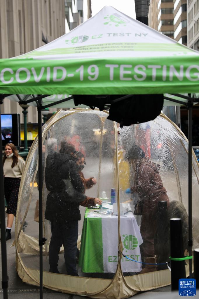 这是12月2日在美国纽约街头拍摄的一处新冠检测点。 包括纽约州在内的美国多个州2日宣布出现更多变异新冠病毒奥密克戎毒株感染病例。 新华社记者 王迎 摄
