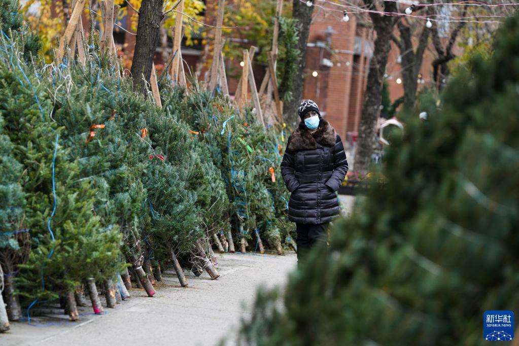 12月2日,在美国纽约,一名女子从摆放在街边售卖的圣诞树旁经过。 包括纽约州在内的美国多个州2日宣布出现更多变异新冠病毒奥密克戎毒株感染病例。 新华社记者 王迎 摄