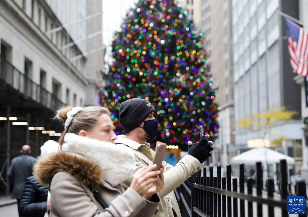 12月2日,人们在美国纽约证券交易所外拍照。 包括纽约州在内的美国多个州2日宣布出现更多变异新冠病毒奥密克戎毒株感染病例。 新华社记者 王迎 摄