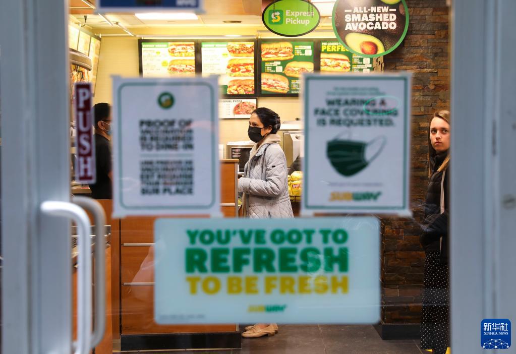 12月2日,人们在美国纽约一家餐厅点餐。 包括纽约州在内的美国多个州2日宣布出现更多变异新冠病毒奥密克戎毒株感染病例。 新华社记者 王迎 摄