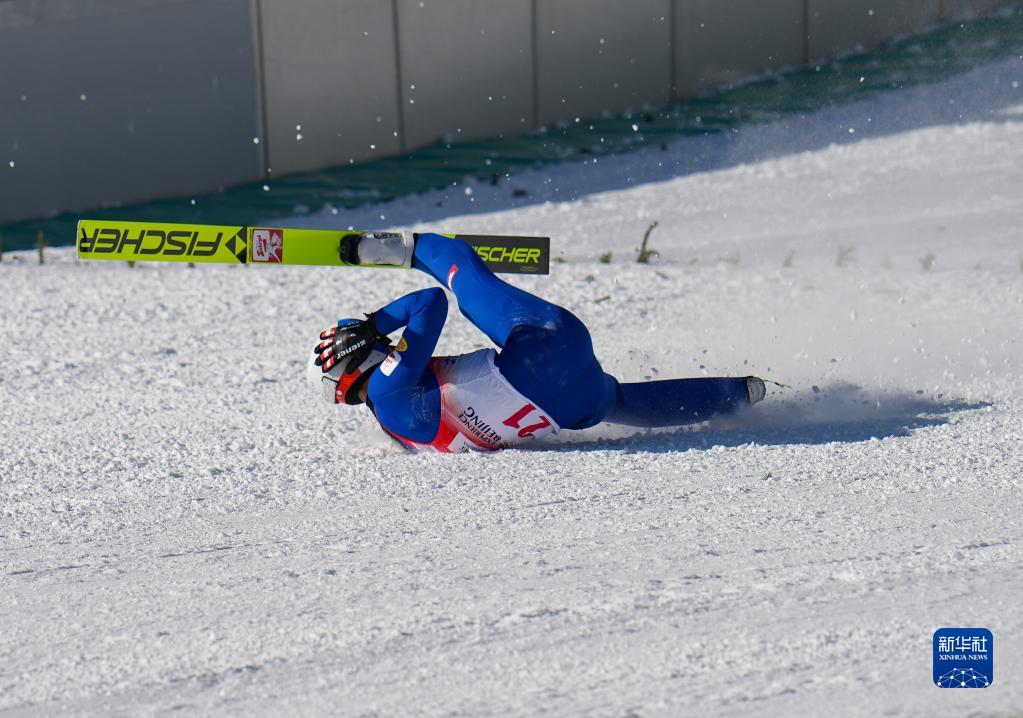 12月5日,奥地利选手赖纳在大跳台比赛中失误。