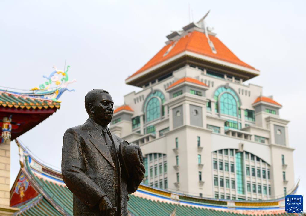 这是厦门大学里的陈嘉庚雕像(4月1日摄)。