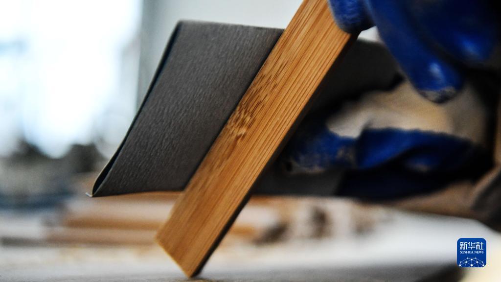 12月6日,融安县一家工艺品厂的工作人员在组装竹木小饰品。