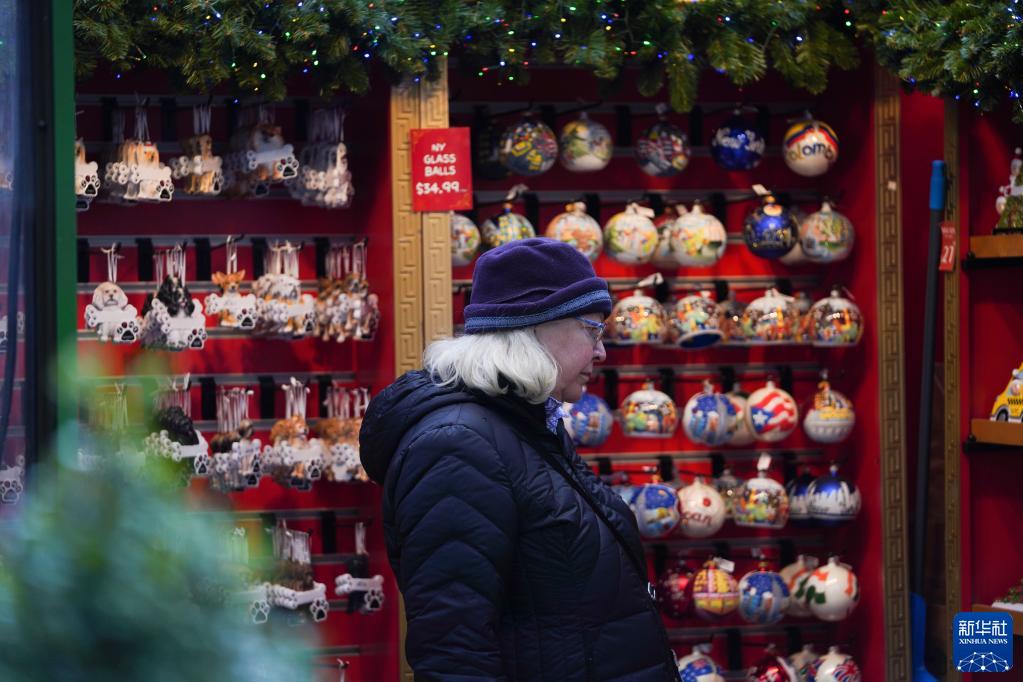 12月7日,人们在美国纽约的一处节日市场选购商品。