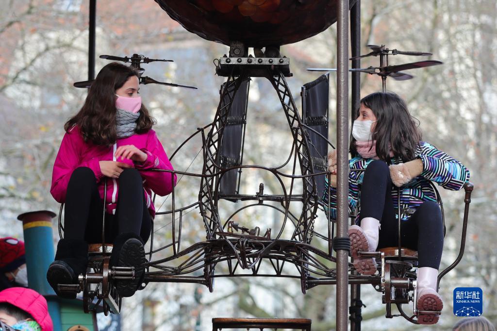 12月11日,人们在比利时布鲁塞尔市中心的圣诞市场乘坐游乐设施。新华社记者郑焕松摄