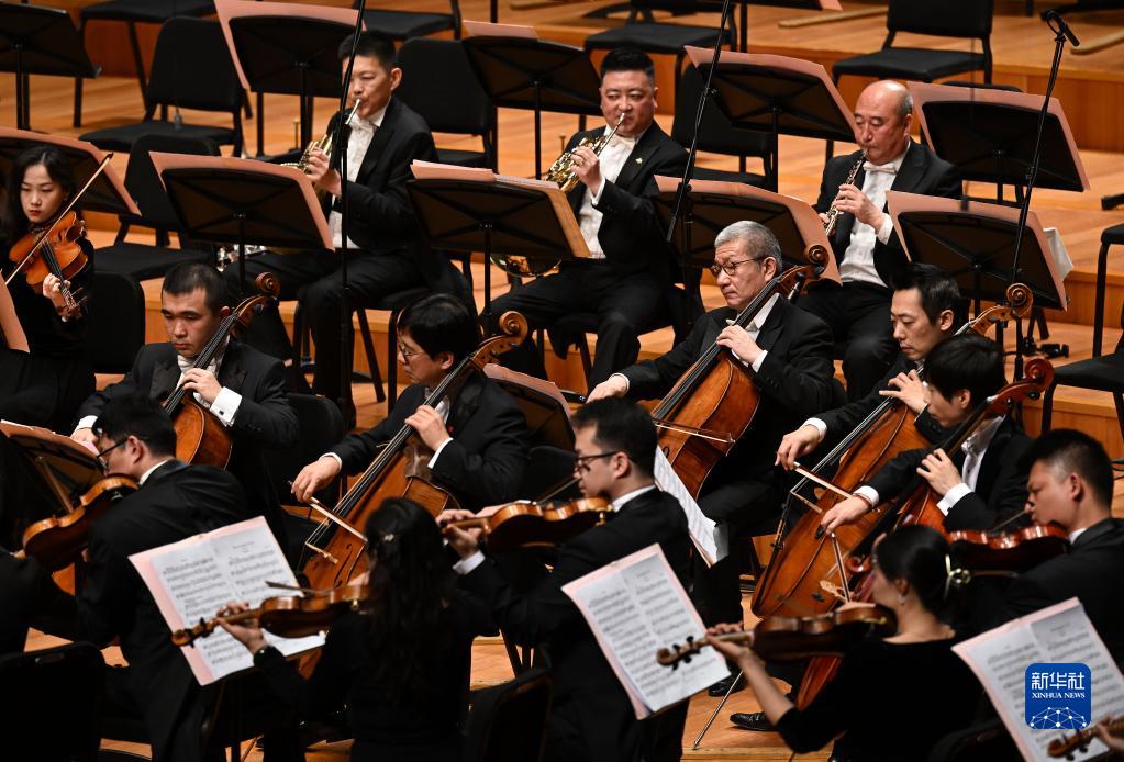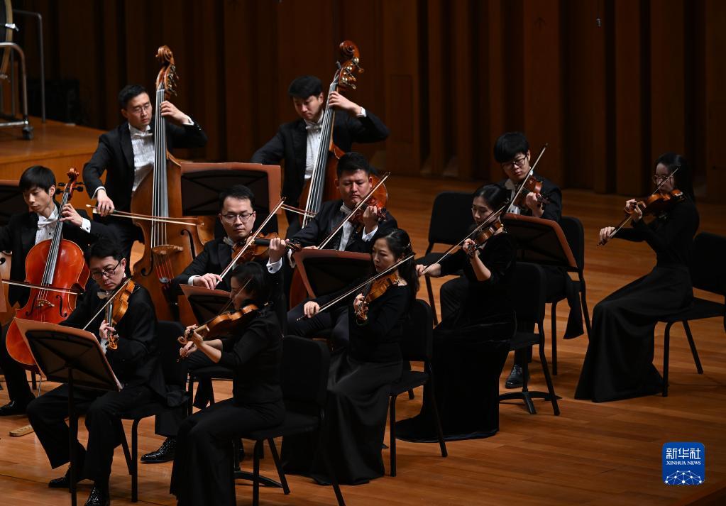 12月12日,指挥李心草(前右)在音乐会上指挥。