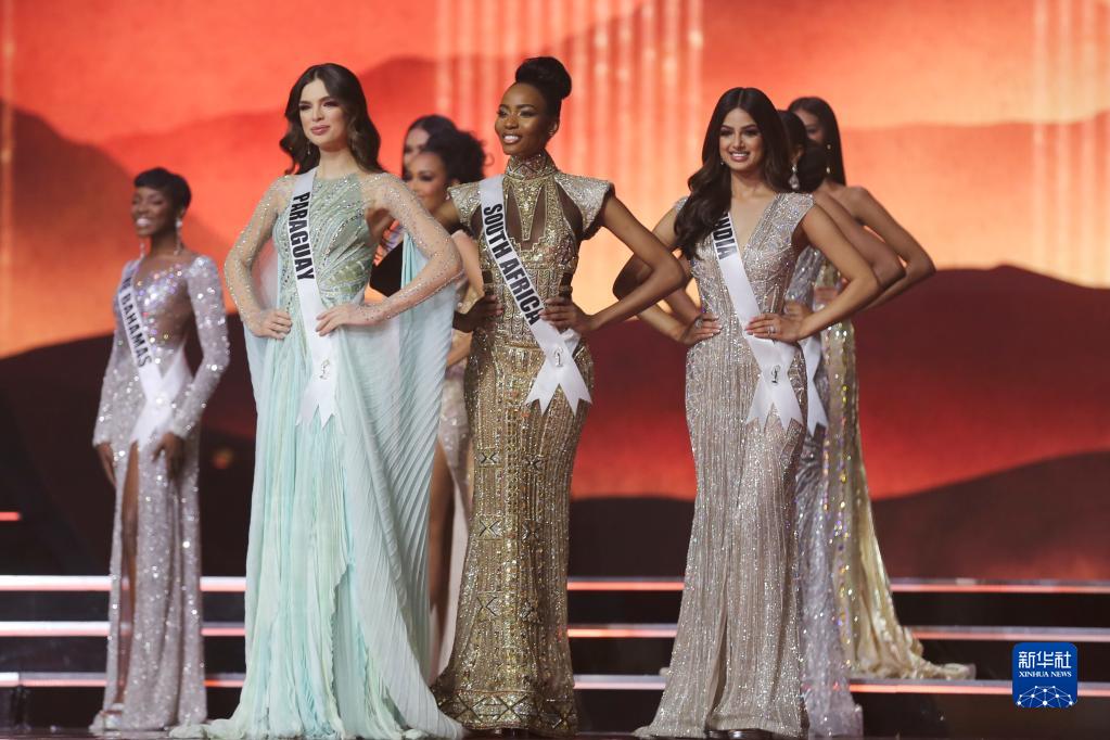12月13日,印度选手哈尔娜兹·桑杜参加在以色列南部海滨城市埃拉特举行的2021“环球小姐”选美大赛总决赛。 2021“环球小姐”选美大赛总决赛13日在以色列南部海滨城市埃拉特举行。21岁的印度演员兼模特哈尔娜兹·桑杜从79名佳丽中脱颖而出,成为2021“环球小姐”冠军。22岁的“巴拉圭小姐”纳迪娅·费雷拉获得亚军,24岁的“南非小姐”拉莱拉·姆斯瓦内获得季军。 新华社记者 尚昊 摄