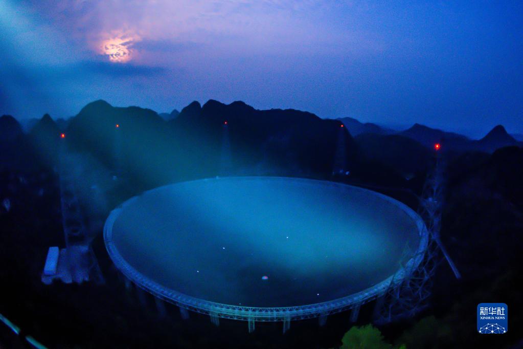 3月30日拍摄的夜幕下的“中国天眼”全景(维护保养期间拍摄)。