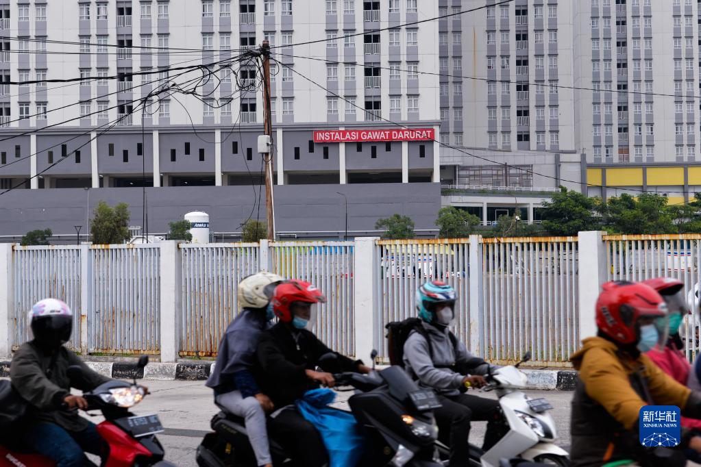 12月16日,人们在印度尼西亚雅加达经过印尼运动员村医院。 印度尼西亚卫生部16日宣布,印尼首次从新冠病例样本中检测到变异毒株B.1.1.529,这是印尼首次报告奥密克戎毒株感染病例。印尼卫生部长布迪·古纳迪16日举行新闻发布会说,印尼新冠隔离医院印尼运动员村医院的3名清洁人员在8日的例行新冠病毒检测中出现阳性结果,病毒样本10日进行全基因组测序。15日晚公布的数据显示,其中1名清洁工的检测结果确认感染奥密克戎毒株。新华社记者 徐钦 摄