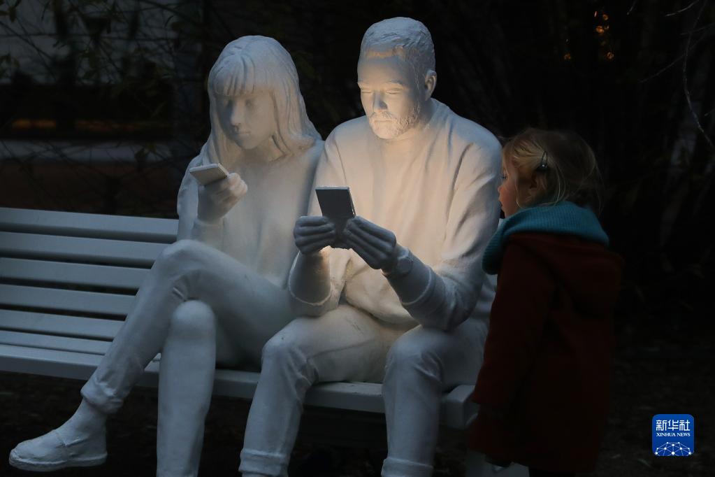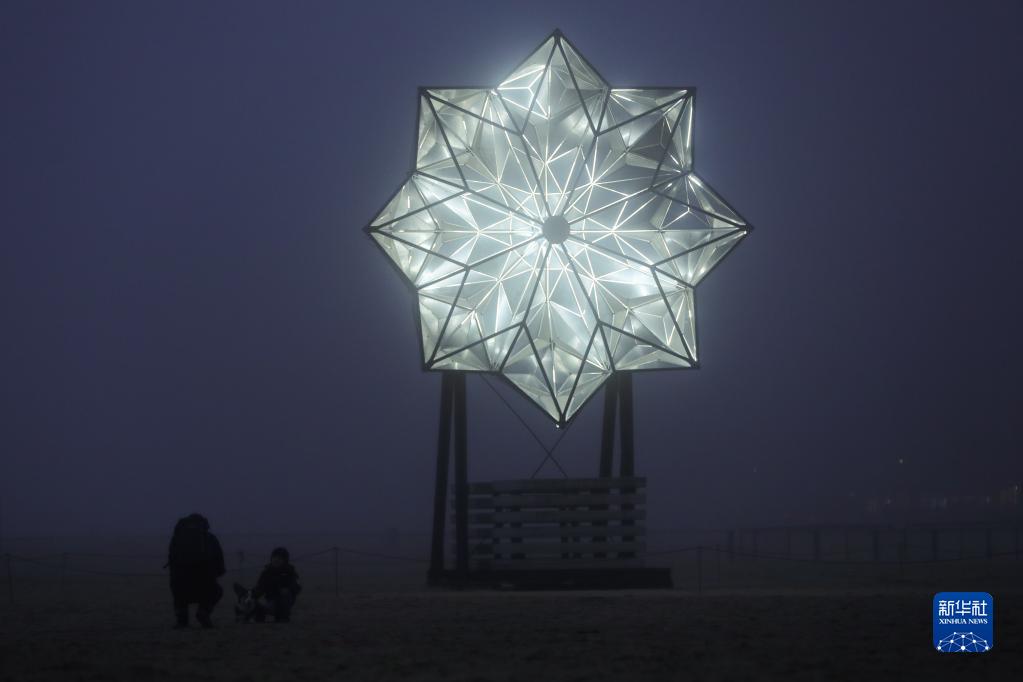 12月18日,人们在比利时克诺克海斯特观看灯光艺术节上的一处艺术装置。 在比利时,冬季白昼时长较短,入夜后的灯光秀是广受人们喜爱的节日活动。近日,比利时西北部的海滨城市克诺克海斯特举办了一场灯光艺术节。艺术家们以“音乐”为主题设计的灯光艺术装置点缀城市多处,在冬夜为人们带来创意十足的视觉盛宴。 新华社记者 郑焕松 摄