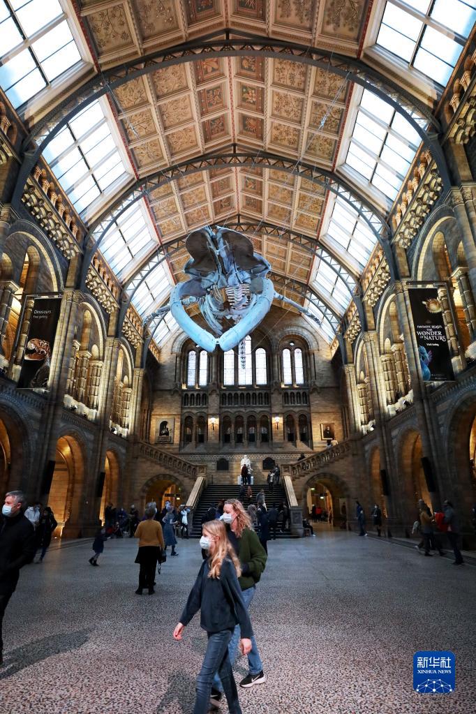 12月18日,在英国伦敦,人们佩戴口罩参观自然历史博物馆。 英国政府紧急情况科学咨询小组18日说,英格兰每天可能新增“数以十万计”变异新冠病毒奥密克戎毒株感染病例。英国首相约翰逊近日表示,奥密克戎毒株已成为英国“非常严重的威胁”。 新华社记者 李颖 摄