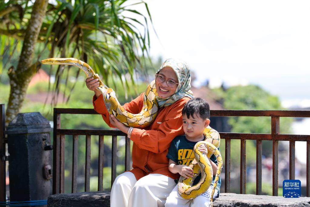 12月18日,在印度尼西亚巴厘岛,游客在海神庙景区留影。 印度尼西亚巴厘省统计局数据显示,受新冠疫情影响,今年1月至10月巴厘岛仅接待45名国际游客。不过,随着新年假期临近,印尼国内旅游业显现逐渐恢复的迹象。 新华社记者 徐钦 摄