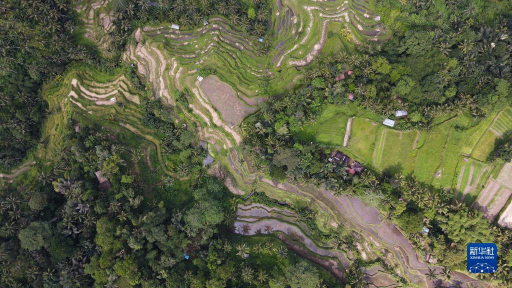 这是12月20日在印度尼西亚巴厘岛拍摄的德格拉朗梯田(无人机拍摄)。 印度尼西亚巴厘省统计局数据显示,受新冠疫情影响,今年1月至10月巴厘岛仅接待45名国际游客。不过,随着新年假期临近,印尼国内旅游业显现逐渐恢复的迹象。 新华社记者 徐钦 摄