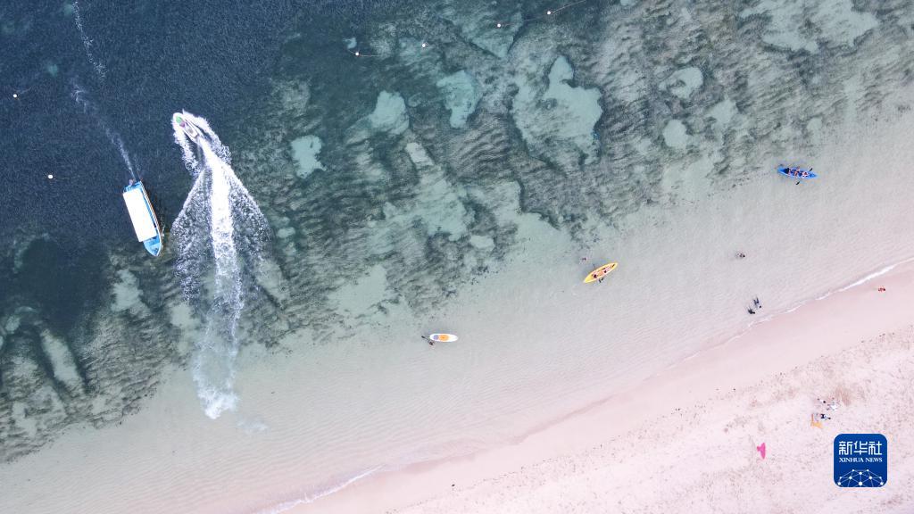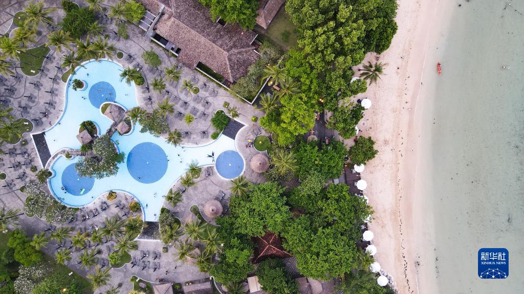 这是12月18日在印度尼西亚巴厘岛拍摄的努沙杜瓦海滩(无人机拍摄)。 印度尼西亚巴厘省统计局数据显示,受新冠疫情影响,今年1月至10月巴厘岛仅接待45名国际游客。不过,随着新年假期临近,印尼国内旅游业显现逐渐恢复的迹象。 新华社记者 徐钦 摄