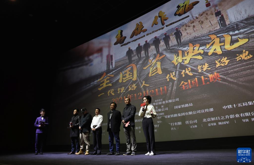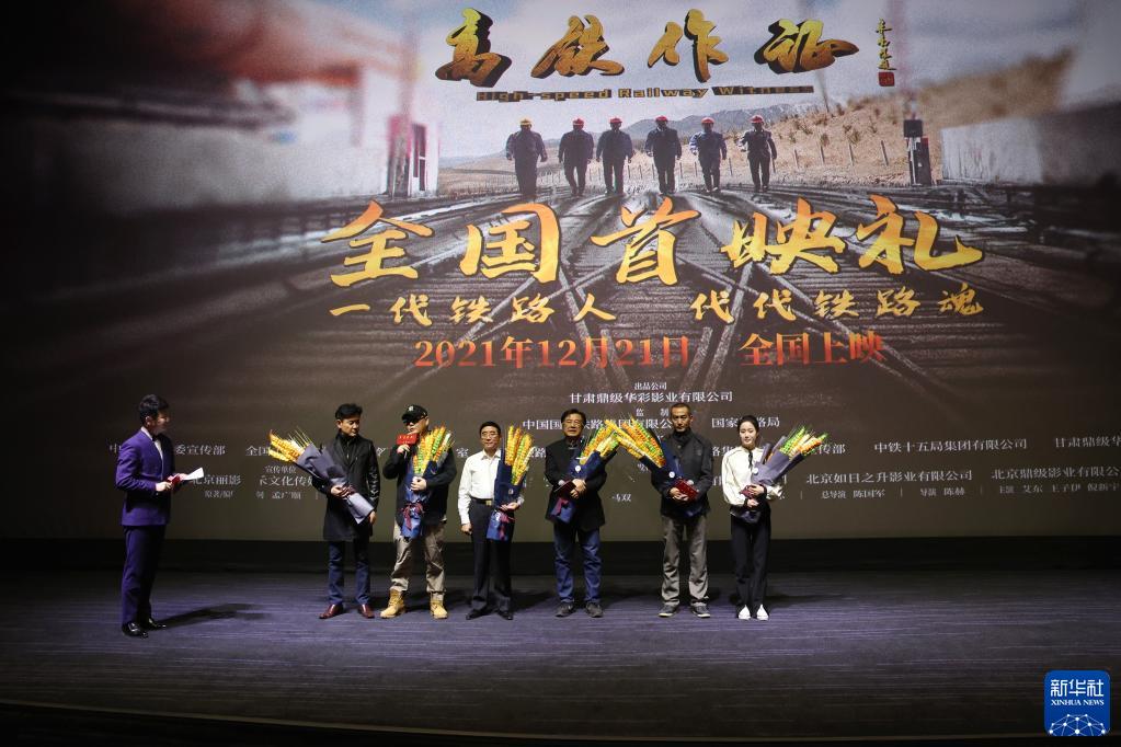 12月20日,主创人员在电影《高铁作证》首映礼上与观众互动。新华社记者 陈斌 摄