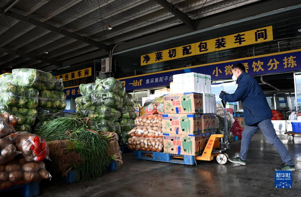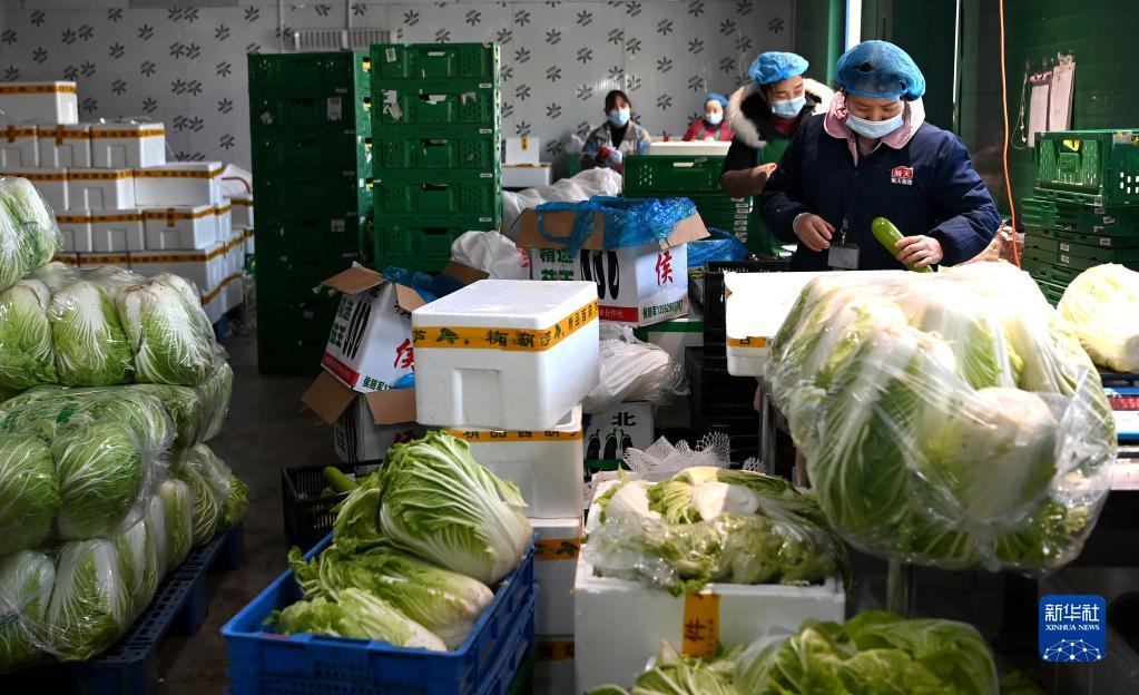 陕西米禾供应链管理股份有限公司的工作人员在分装即将配送的蔬菜(12月19日摄)。