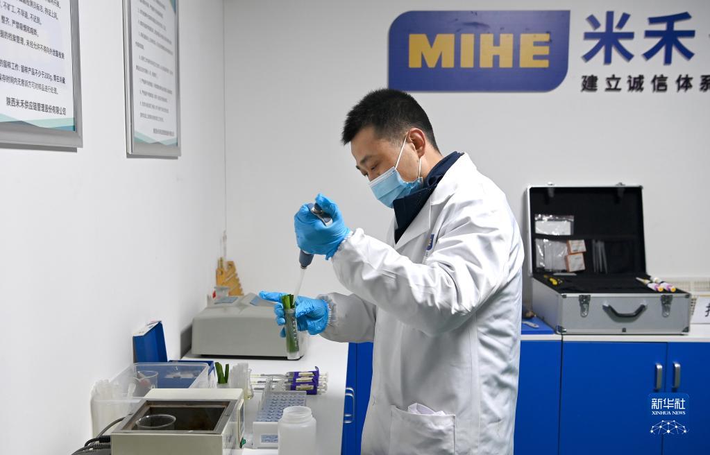 陕西米禾供应链管理股份有限公司的工作人员在进行农残检测(12月19日摄)。
