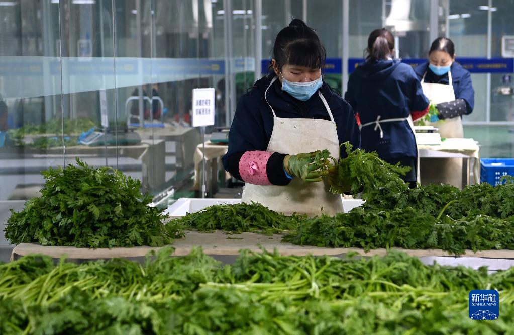 陕西米禾供应链管理股份有限公司的工作人员在分拣蔬菜(12月19日摄)。