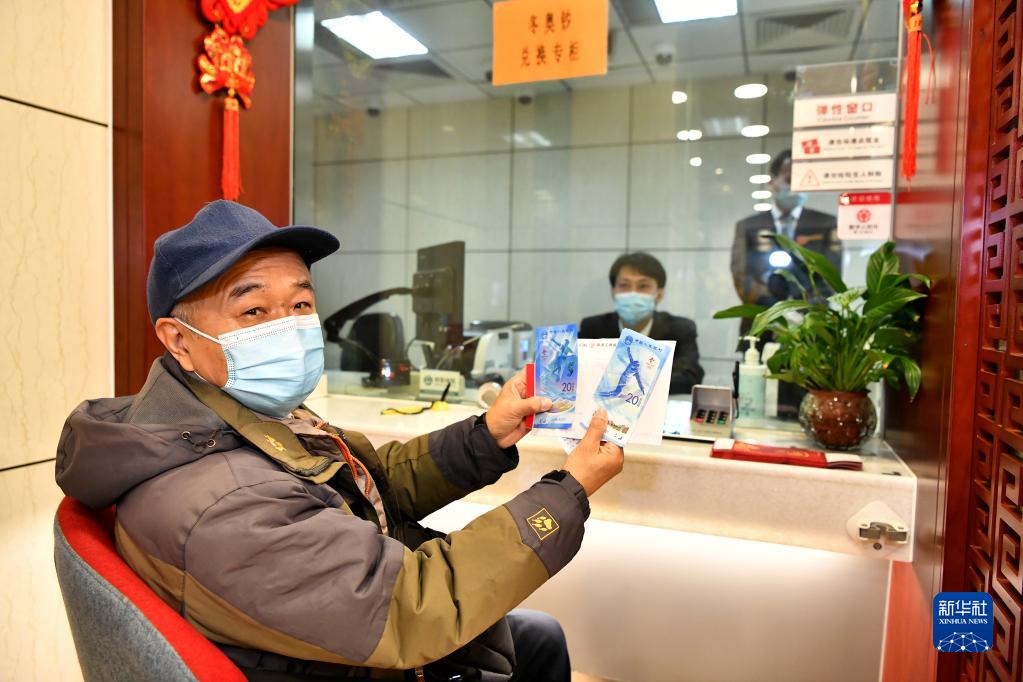 12月21日,市民雷先生展示在中国工商银行北京西客站支行兑换的第24届冬季奥林匹克运动会纪念钞。