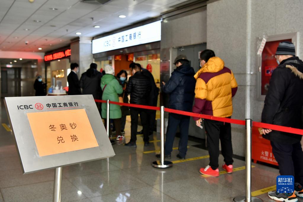 12月21日,市民在中国工商银行北京西客站支行门口排队等待兑换第24届冬季奥林匹克运动会纪念钞。
