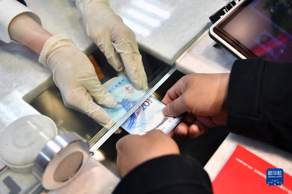 12月21日,市民在中国工商银行北京西客站支行兑换第24届冬季奥林匹克运动会纪念钞。