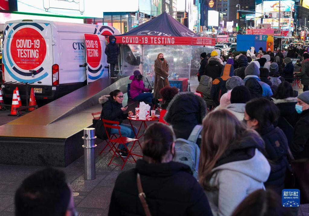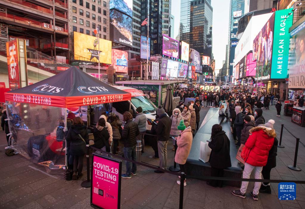 12月20日,人们在美国纽约时报广场排队等待进行核酸检测。 美国疾病控制和预防中心网站20日公布的疫情模型数据显示,截至12月18日的一周,变异新冠病毒奥密克戎毒株感染病例占到总病例数的73.2%。奥密克戎已取代德尔塔毒株成为在美主要流行毒株。 新华社记者 王迎 摄