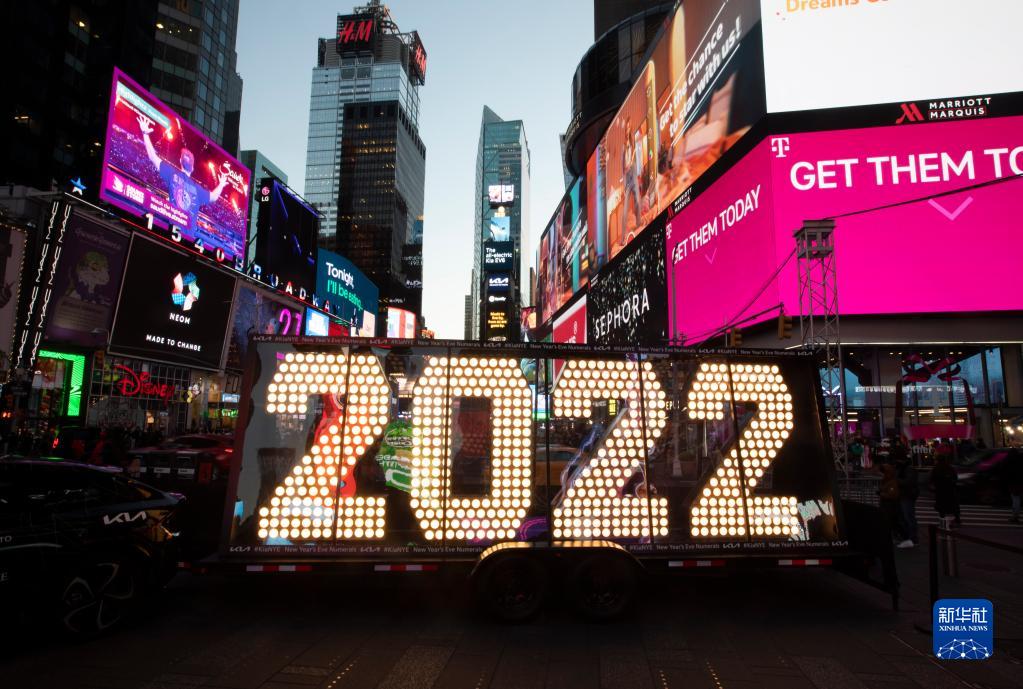 当天,这组“2022”灯光装置运抵时报广场与公众见面,展示几天后将被安装在“时报广场一座”大楼楼顶,迎接2022年的到来。