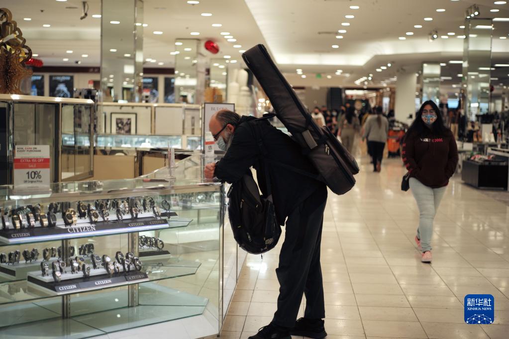 12月26日,一名男子在美国旧金山湾区圣克拉拉一家购物中心购物。
