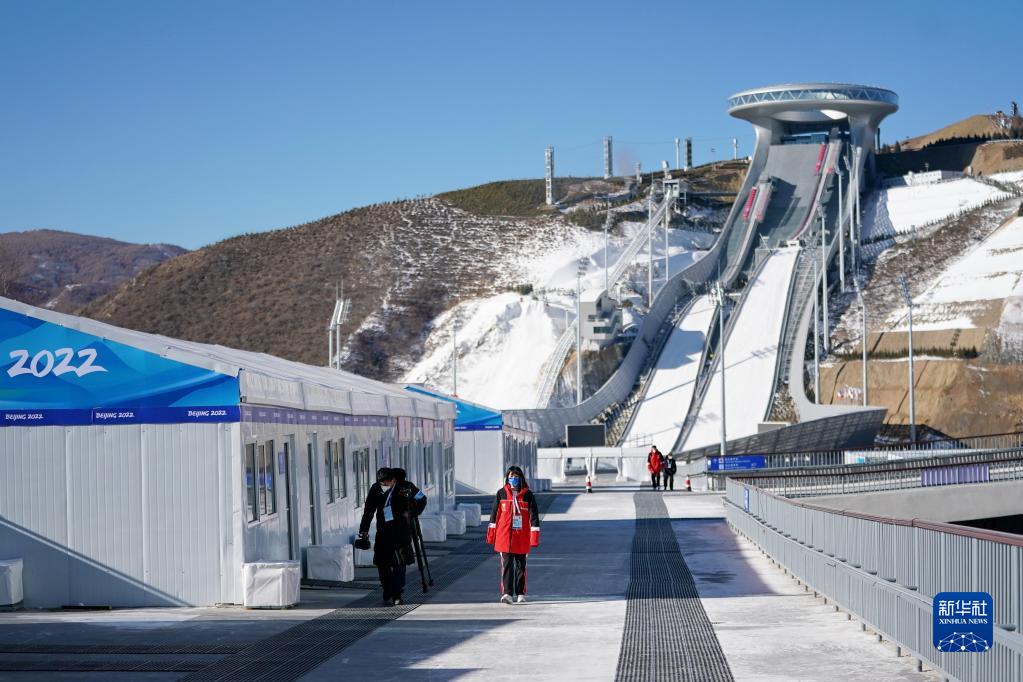 2021年12月28日,工作人员走过国家冬季两项中心通道。新华社记者 牟宇 摄