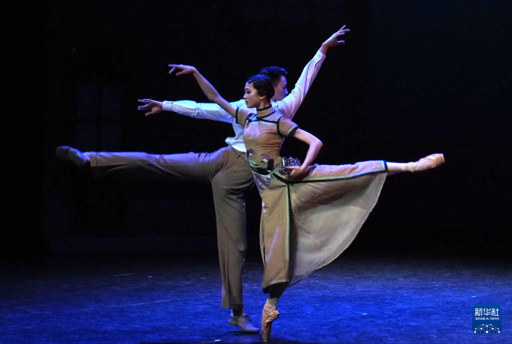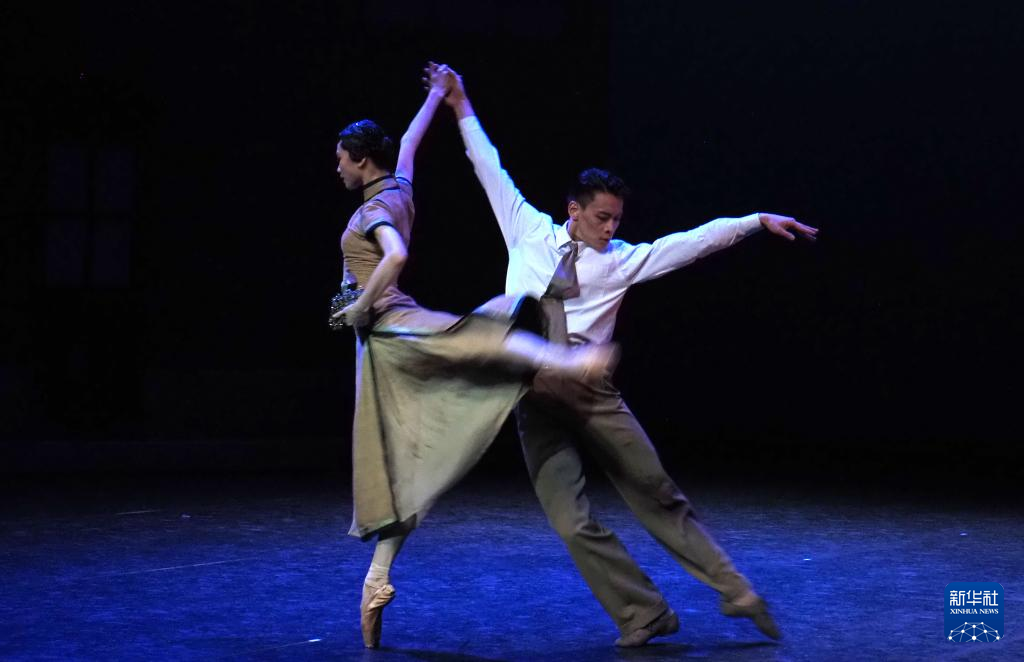 2月22日,上海芭蕾舞团演员在演出季发布会现场(上海国际舞蹈中心实验剧场)演出芭蕾舞剧《花样年华》片段。新华社记者 任珑 摄